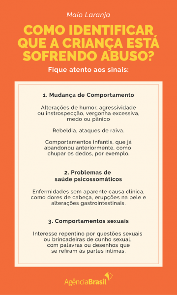 A iniciativa é uma das ações do Maio Laranja, criado exatamente para incentivar a realização de atividades que possam conscientizar, prevenir, orientar e combater o abuso e a exploração sexual de crianças e adolescentes durante todo o mês de maio. Como parte das ações programadas, ontem (17) o governo lançou o Programa Nacional de Enfrentamento à Violência Contra Crianças e Adolescentes.
