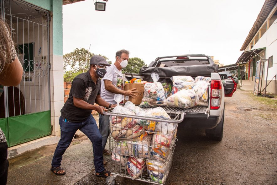 Sentadinhas, usando máscaras faciais e o álcool gel 70%, crianças moradoras do Quingoma, que recebem aulas gratuitas de reforço, também foram beneficiadas com a entrega dos alimentos. A mentora do projeto, Raquel Conceição, que junto com outras mães da comunidade, dá aulas diariamente para mais de 30 crianças, explica que a iniciativa surgiu a partir da suspensão das aulas presenciais devido a pandemia do coronavírus e a necessidade de manter as atividades educacionais dos pequenos. “Aqui, além das aulas eles são alimentados. Estes alimentos irão nos ajudar a complementar as refeições dos nossos pequenos”, disse.