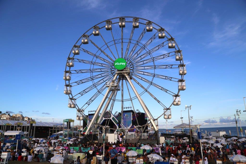 A Arena Daniela Mercury, palco do Festival Virada Salvador, é também o point para a diversão familiar e para o passeio dos casais. Já consolidada, a roda-gigante atrai um público cativo, que busca por uma visão panorâmica do festival, pelas selfies e também pelo clima romântico.