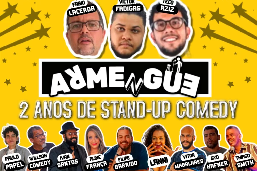 O Armengue Solidário reunirá um elenco de peso, formado por nomes que arrastam fãs e colecionam histórias nos palcos: Têco Aziz, Fábio Lacerda, Victor Fadigas, Ivan Santos, Aline França, Vitor Magalhães, Syd Hafner, Thiago Smith, Paulo Papel, Wilson Comedy, Lanni e Filipe Garrido. A expectativa é de casa cheia, gargalhadas soltas e uma atmosfera de união em prol da solidariedade.