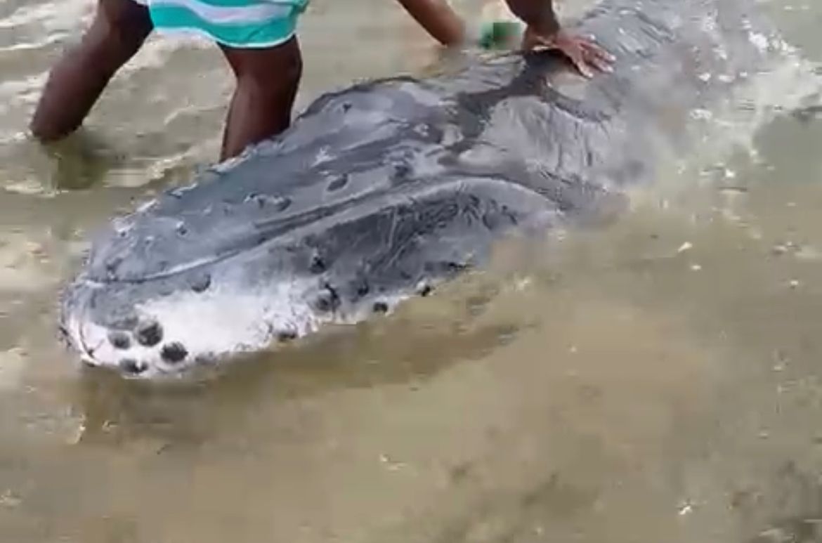 Na manhã de terça-feira, dia 1º, uma baleia ficou encalhada na praia de Itapuã, localizada em Salvador. Um vídeo divulgado enviado pelo leitor do Fala Cajazeiras mostra pescadores se esforçando para manter o animal vivo e pedindo auxílio das autoridades responsáveis.