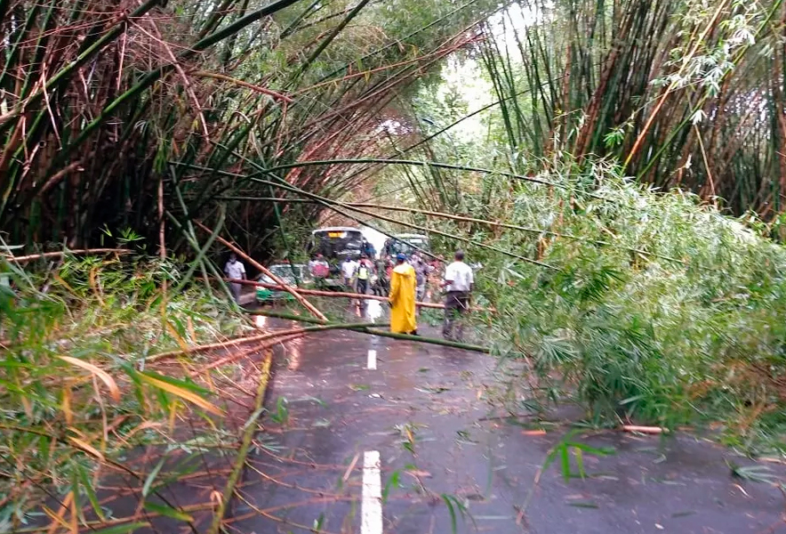 Parte dos bambus plantados na via de acesso ao aeroporto de Salvador desabou na manhã desta quarta-feira (13), durante a chuva forte que atinge a capital baiana. Não há registro de feridos.