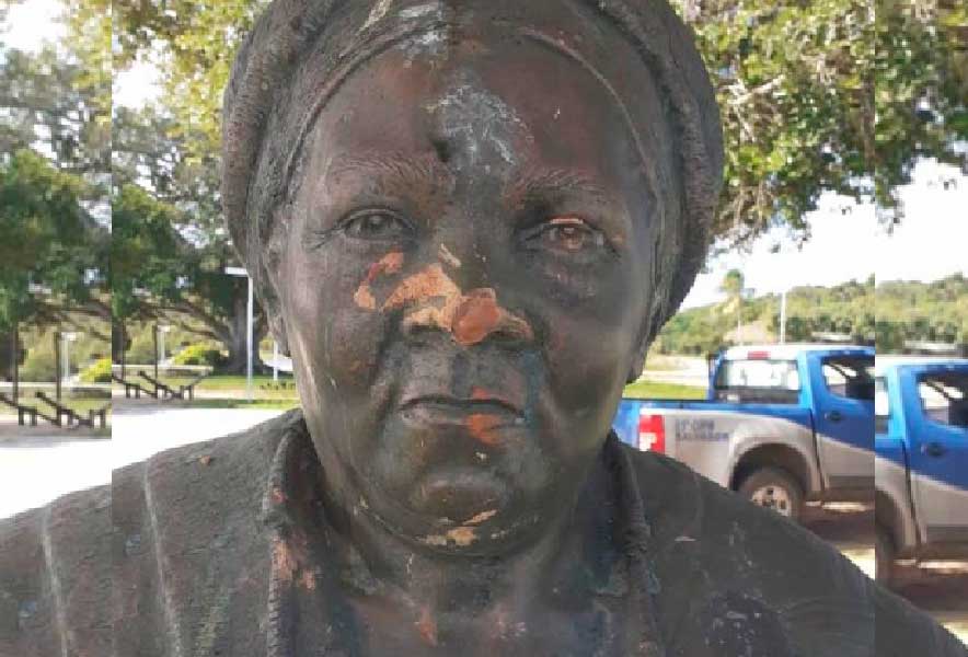 O busto que presta homenagem à ialorixá Gildásia dos Santos, conhecida como ‘Mãe Gilda’, voltou a ser alvo de intolerância religosa na tarde desta quarta-feira, 15, no bairro de Itapuã, em Salvador. Em vídeo publicado nas redes sociais, mãe Jaciara Ribeiro dos Santos, sucessora e filha biológica de Mãe Gilda, se mostrou indignada com a situação. “Eu estou aqui no busto de mãe Gilda. Eu recebi uma ligação dizendo que um homem veio aqui, depredou e quebrou tudo. Ele foi algemado, a polícia está aqui. Ele disse que foi a mando de Deus. Que Deus é esse?”, questionou.