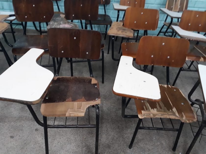 Alunos setam em Cadeiras completamente danificadas