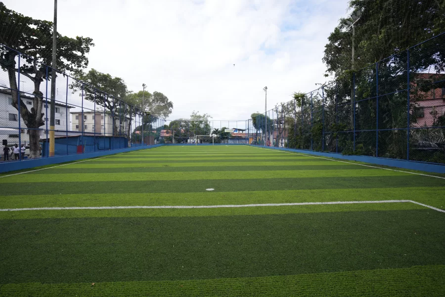 Os moradores de Fazenda Grande 2, em Cajazeiras, ganharam um novo espaço de lazer nesta sexta-feira (12). O campo do final de linha foi inaugurado com gramado sintético, iluminação e uma praça no entorno, reforçando o ponto de encontro da comunidade.