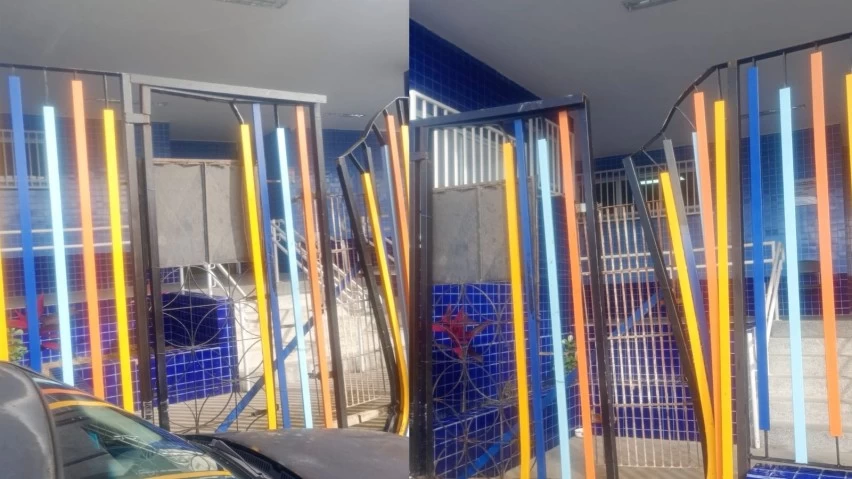 Na noite de domingo (31), um veículo colidiu contra o portão da Escola Municipal Conselheiro Luiz Rogério, no bairro de Castelo Branco, em Salvador, deixando a estrutura danificada.