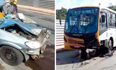 Uma colisão envolvendo dois veículos, um Celta na cor prata e um Micro ônibus do Subsistema de Transporte Especial Complementar (STEC), deixou duas pessoas gravemente feridas...