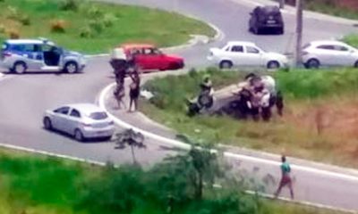 No fim da manhã desta quinta-feira, 26, uma viatura capotou após uma perseguição policial, na rotatória da Avenida Dois de Julho, região de Cajazeiras, em Salvador....