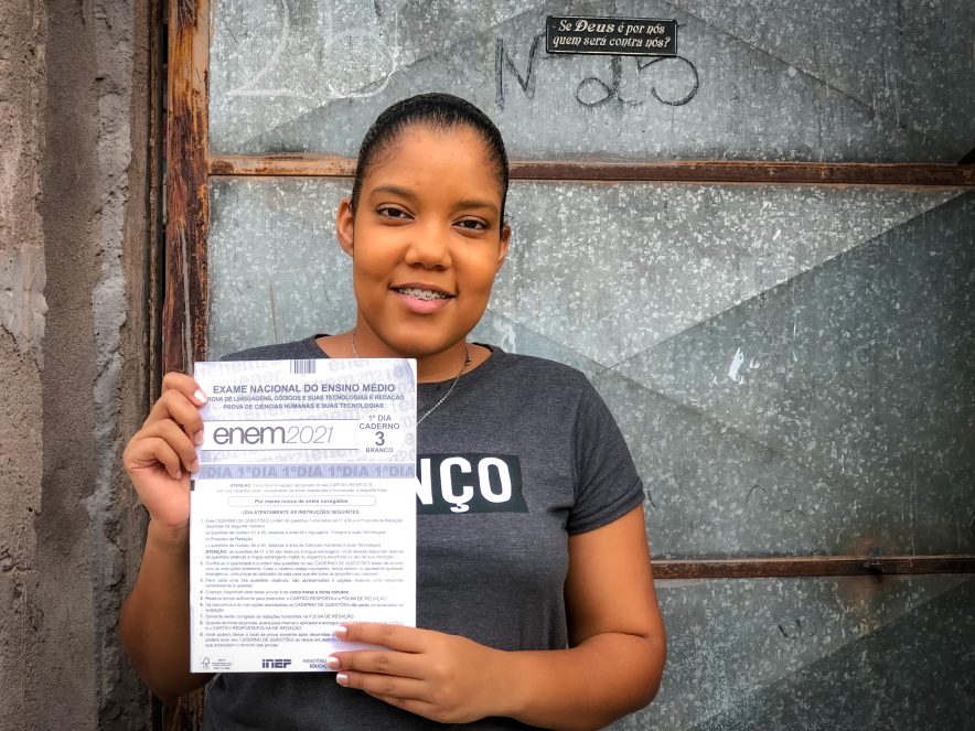 Ex-aluna da rede pública, Érica Natália Santana, de 24 anos, moradora de Lauro de Freitas, foi destaque na redação do Exame Nacional do Ensino Médio (Enem), edição 2021. A jovem participante marcou 980 pontos na produção textual. Até então, apenas três estudantes baianos oriundos da rede particular conseguiram tirar nota mil na redação do exame. Para alcançar esse resultado, Érica disse que treinou bastante a escrita e gritou de alegria quando conferiu sua nota no sistema.