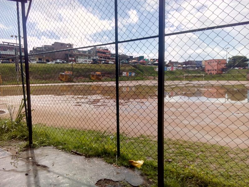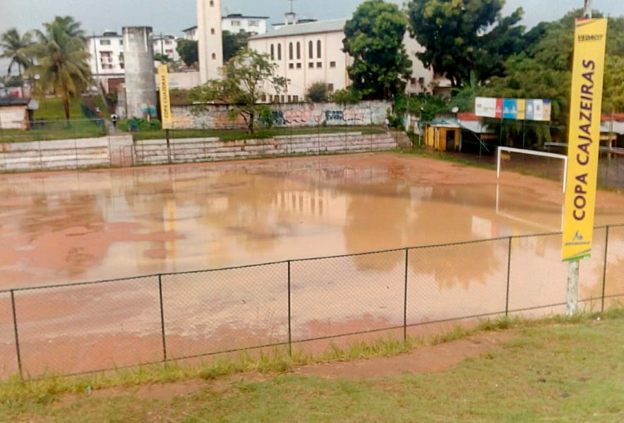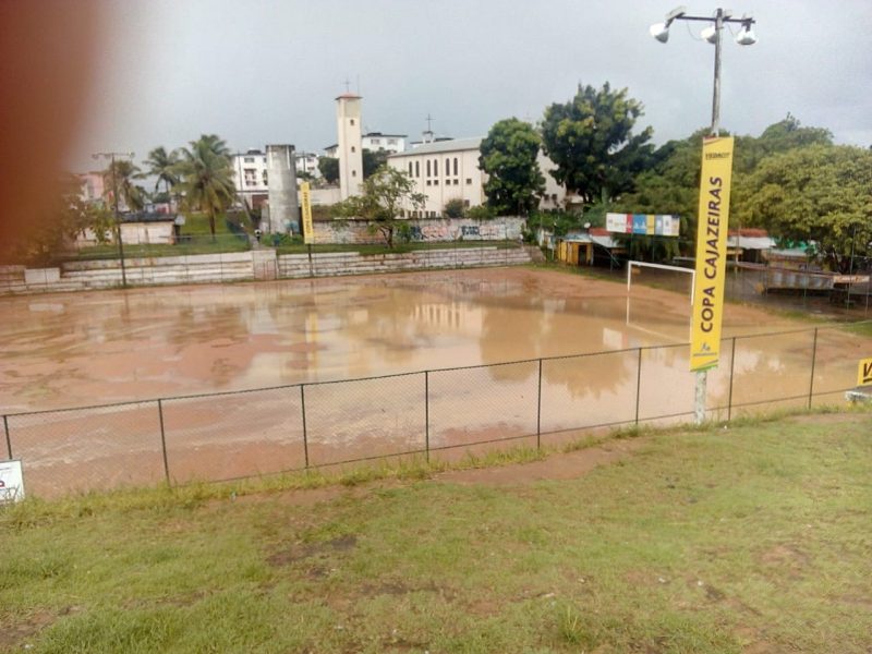 Campo da Pronaica, um dos principais campos de várzea de Cajazeiras alaga com as fortes chuvas que caíram em Cajazeiras nesta quarta-feira (15).