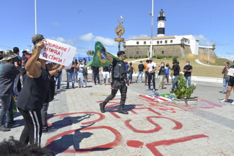 Um grupo de comerciantes e policiais militares realizaram na manhã desta segunda-feira, 29, um protesto no Farol da Barra, em Salvador, por conta da morte do policial Wesley Soares. O soldado foi morto neste domingo, 28, após ter um surto psicótico e fazer disparos de fuzil na Barra.