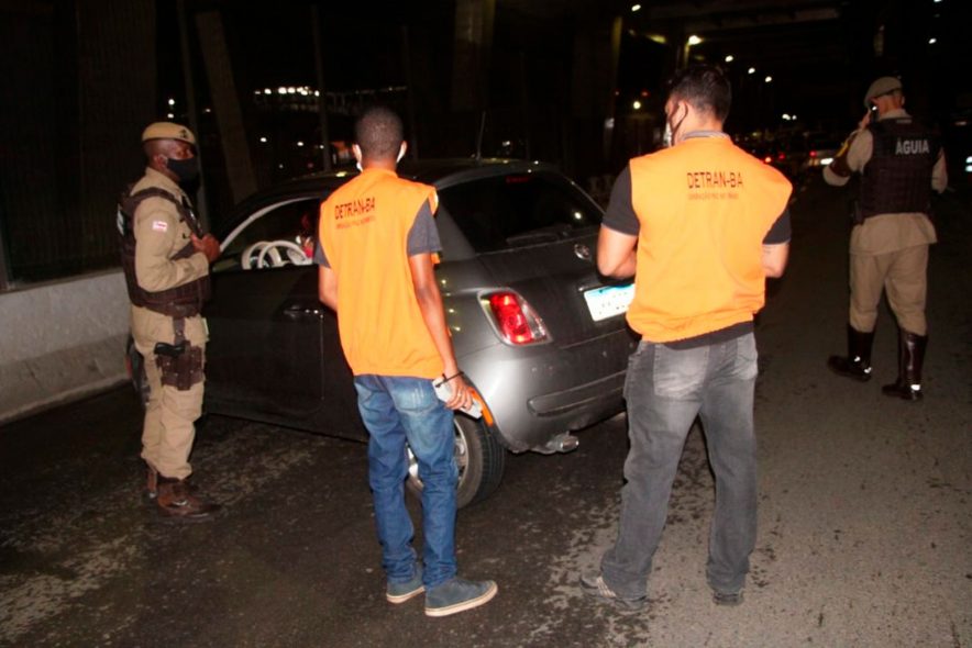 Durante a pandemia da Covid-19, a Operação Lei Seca do Departamento Estadual de Trânsito (Detran-BA) foi mantida, em parceria com a Polícia Militar, para garantir a segurança nas vias. Somente em outubro, aconteceram 70 ações de fiscalização, na capital e no interior, com a participação de 529 servidores do Detran-BA e 777 policiais.