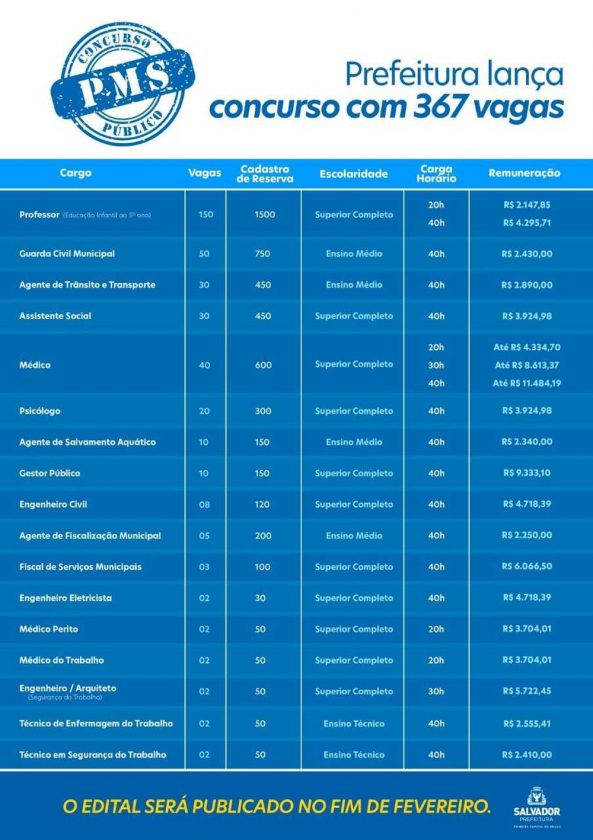 As 368 vagas estão distribuídas em três editais: