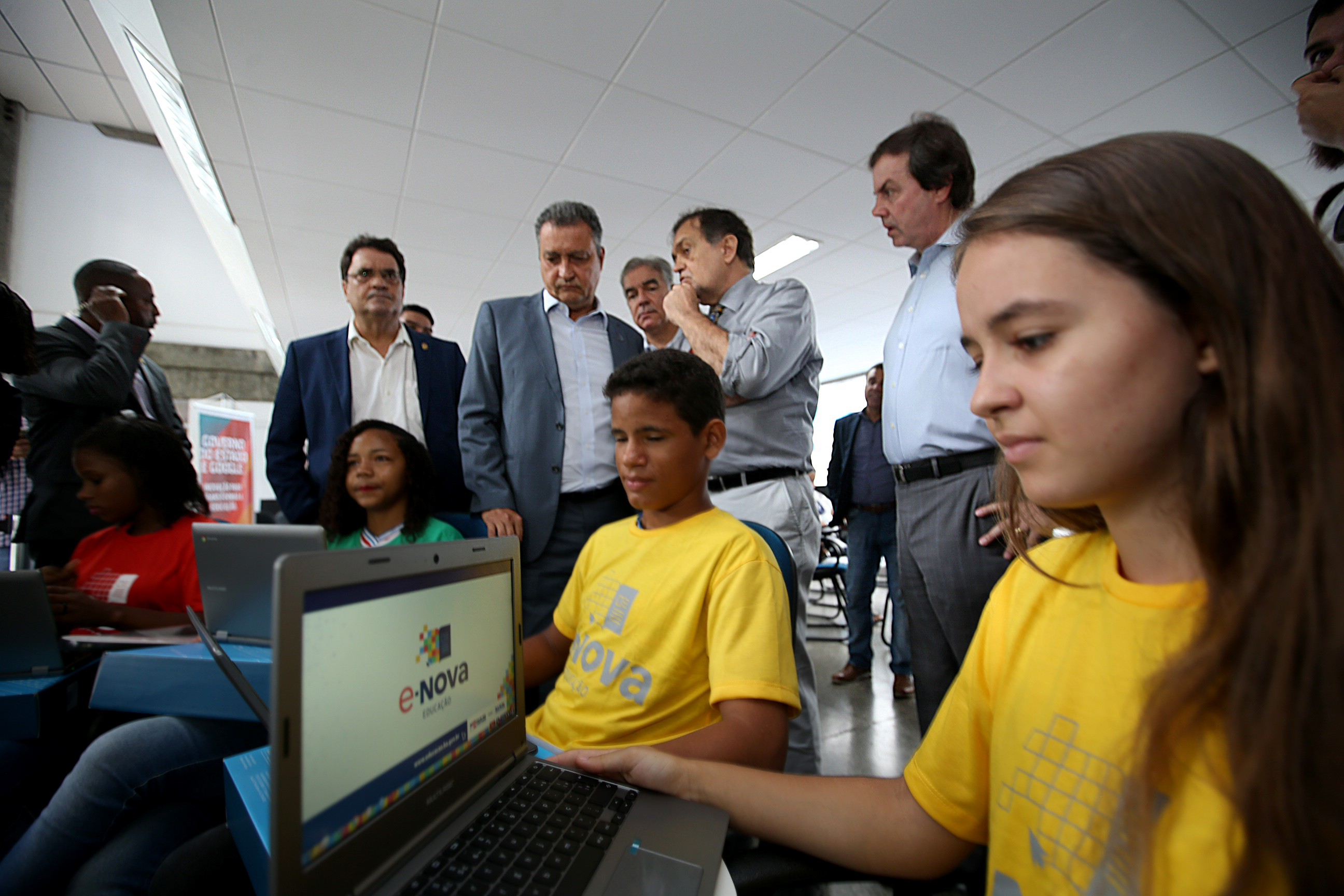 Conteúdo pedagógico associado às tecnologias digitais. O projeto e-Nova Educação, lançado pelo governador Rui Costa na manhã desta quarta-feira (4), no Instituto Anísio Teixeira (IAT), em Salvador, levará internet de alta velocidade e dispositivos móveis para as salas de aula de toda a rede estadual de ensino. A inovação beneficiará alunos e professores e é fruto de uma parceria do Governo do Estado, por meio da Secretaria de Educação, com o Google for Education.