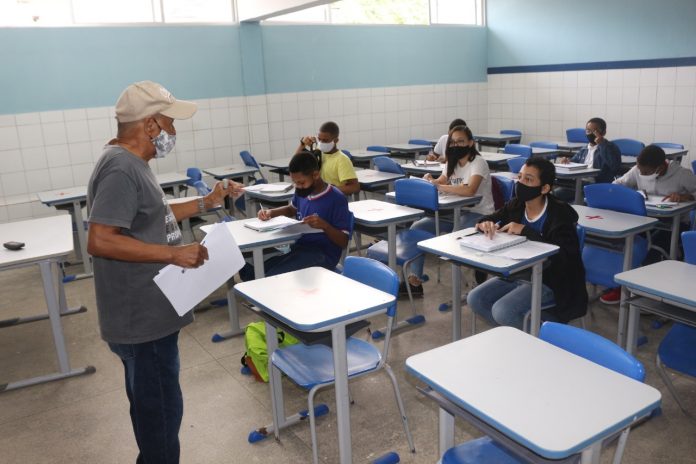 As aulas semipresenciais dos 125.481 estudantes do Ensino Fundamental da rede estadual foram iniciadas, nesta segunda-feira (9), em todo o Estado, três semanas após a retomada dos estudantes do Ensino Médio. Todas as unidades escolares que atendem de forma compartilhada ou exclusiva a oferta de ensino recepcionaram os estudantes seguindo todos os protocolos de biossegurança, como aferição da temperatura, uso obrigatório de máscara, higienização das mãos em pias e dispensers com álcool em gel 70% e distanciamento social. Além disso, foram entregues kits contendo uma camisa da farda e duas máscaras de proteção.