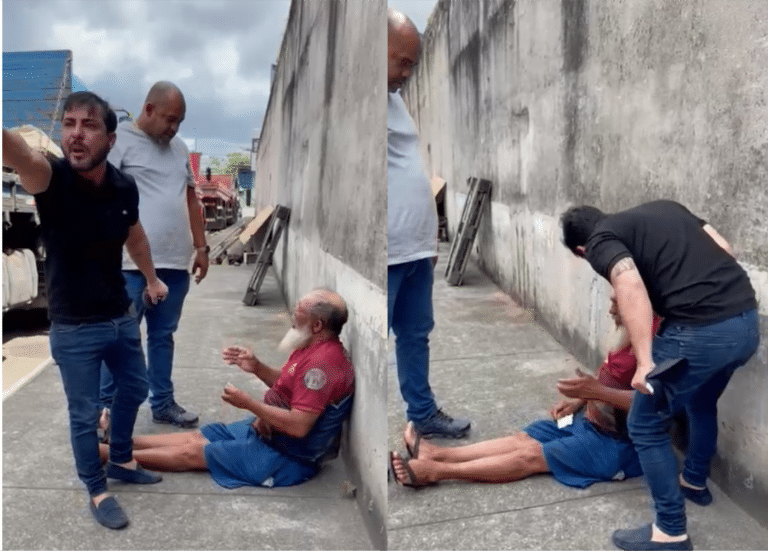 Nas imagens gravadas por pessoas que estavam no local, Marcell aparece dizendo, aos gritos, que havia acionado a Polícia Militar para prender o agressor do animal, além de aparecer xingando e com o dedo apontado para o rosto do idoso, que estava sentado no chão.