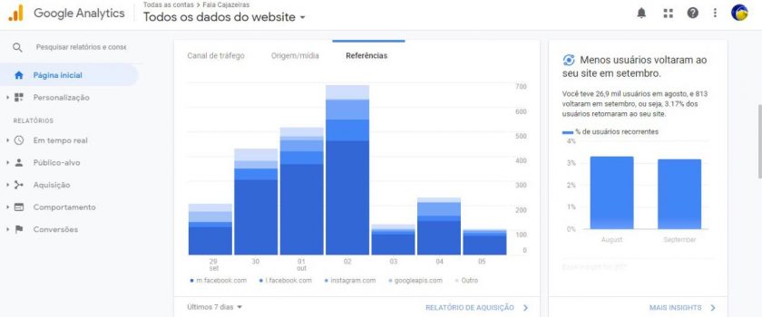 Criado há pouco mais de três anos, o Portal de notícias Fala Cajazeiras ultrapassou a casa dos 2 milhões de acessos, a informação foi confirmada na última semana com relatórios enviados pelo Google através da ferramenta Google Analytics. A informação que foi recebida com muita alegria por toda a equipe, e consolida o Fala Cajazeiras pelo índice de crescimento como um dos principais meios de comunicação de Cajazeiras, bairro que atualmente é listado como o maior Conjunto Habitacional da América Latina.