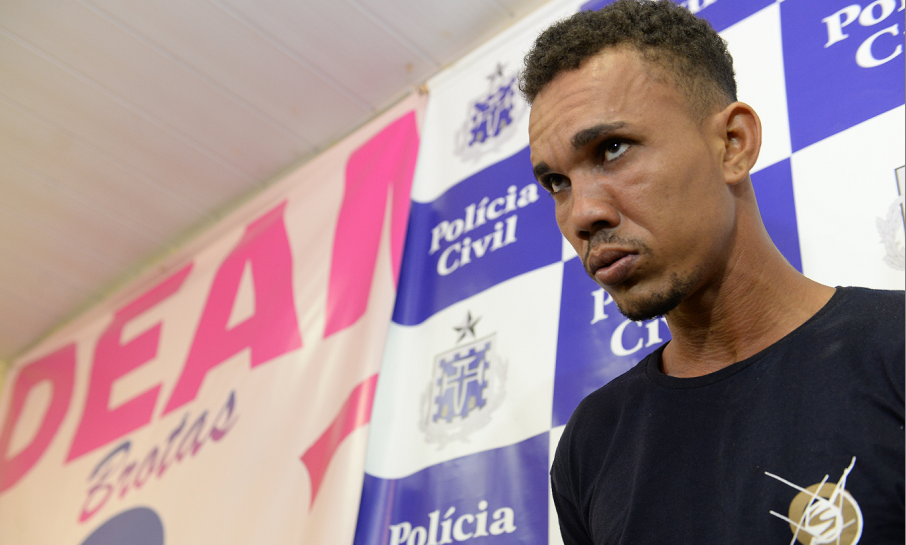 O açougueiro Rafael Santos, 28, ao ser apresentado pela polícia (Foto: Betto Jr./CORREIO)