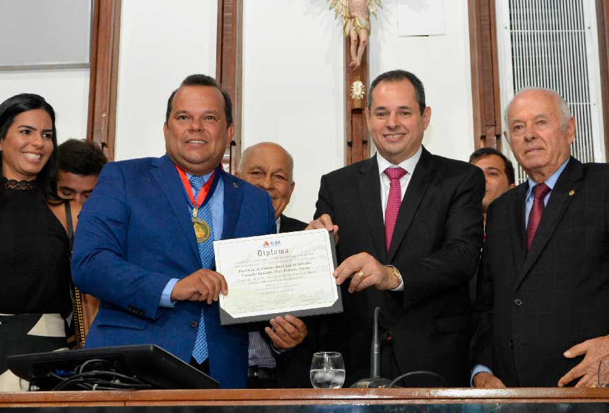 Em uma das sessões especiais mais disputadas da Assembleia Legislativa da Bahia (AL-BA), o presidente da Câmara de Salvador, vereador Geraldo Júnior (SD) recebeu a mais alta honraria do Legislativo baiano, na manhã desta segunda-feira (9). A homenagem rendeu a participação de secretários, vereadores, deputados, dos blocos governistas e de oposição, além de diversos representantes de categorias. A honraria foi proposta no Legislativo estadual pelo deputado estadual Jurandy Oliveira (PP).