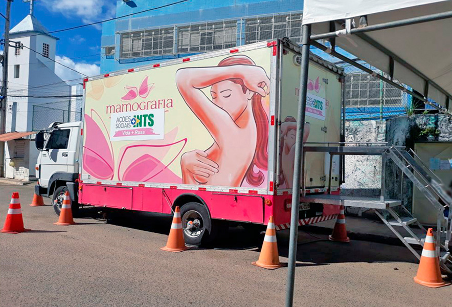 Ação acontece no estacionamento do Salvador Norte Shopping e faz parte do programa Vida+Rosa do INTS .Após oferecer exames de oftalmologia gratuitamente através do projeto “De Olho na Saúde”, o Instituto Nacional de Amparo à Pesquisa, Tecnologia e Inovação na Gestão Pública (INTS) retorna ao estacionamento do Salvador Norte Shopping para realizar exames de mamografia de forma gratuita para as moradoras do bairro de São Cristóvão e região.