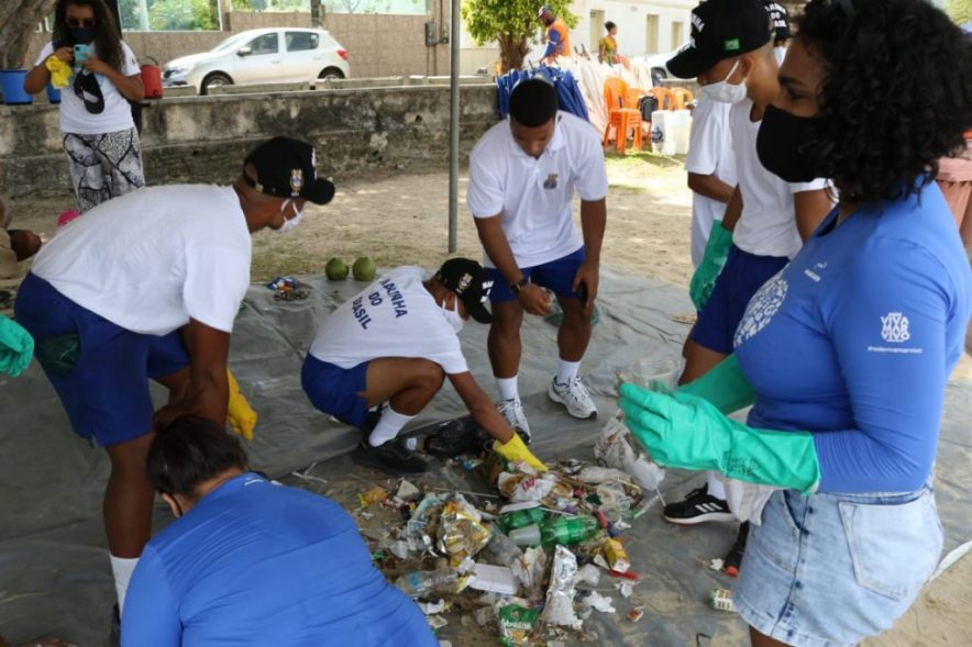 A Marinha do Brasil foi outra importante parceria para a realização da ação. A capitã-tenente Mychayanny, da Base Naval de Aratu, chamou atenção da população para a preservação da ‘Amazônia Azul’, conceito que faz paralelo entre as riquezas existentes no nosso mar com as presentes na Amazônia. “Precisamos evitar que o lixo que produzimos se acumule em nossas praias e rios. E essa mudança está em nossas mãos, cabe a cada um de nós assimilar as práticas de combate no lixo no mar uma nova rotina de vida”, disse.