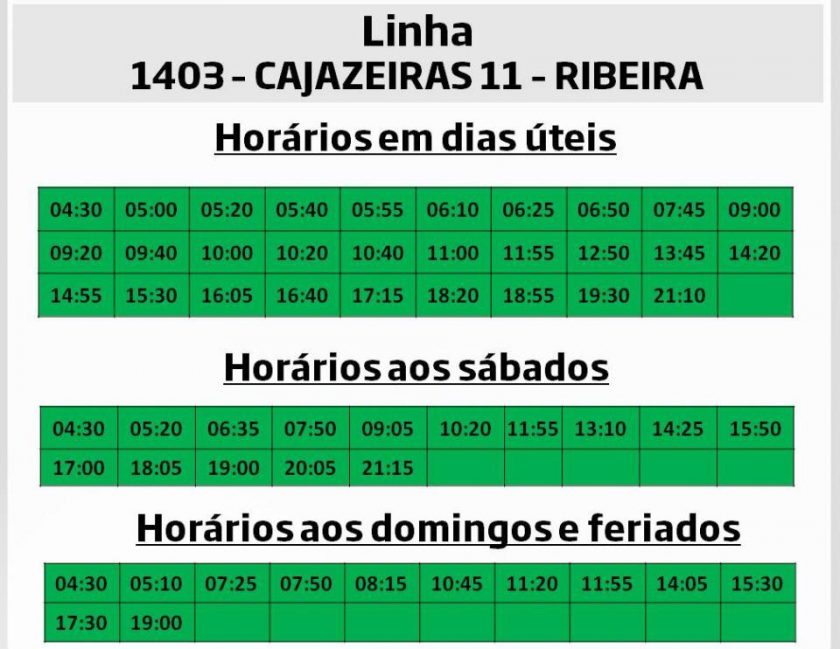 A linha 1436 Cajazeiras 11/Pituba será reforçada passando a contar com 16 veículos em sua frota e a linha 1403 Ribeira/Cajazeiras 11 será reforçada aos fins de semana por conta da operação praia.