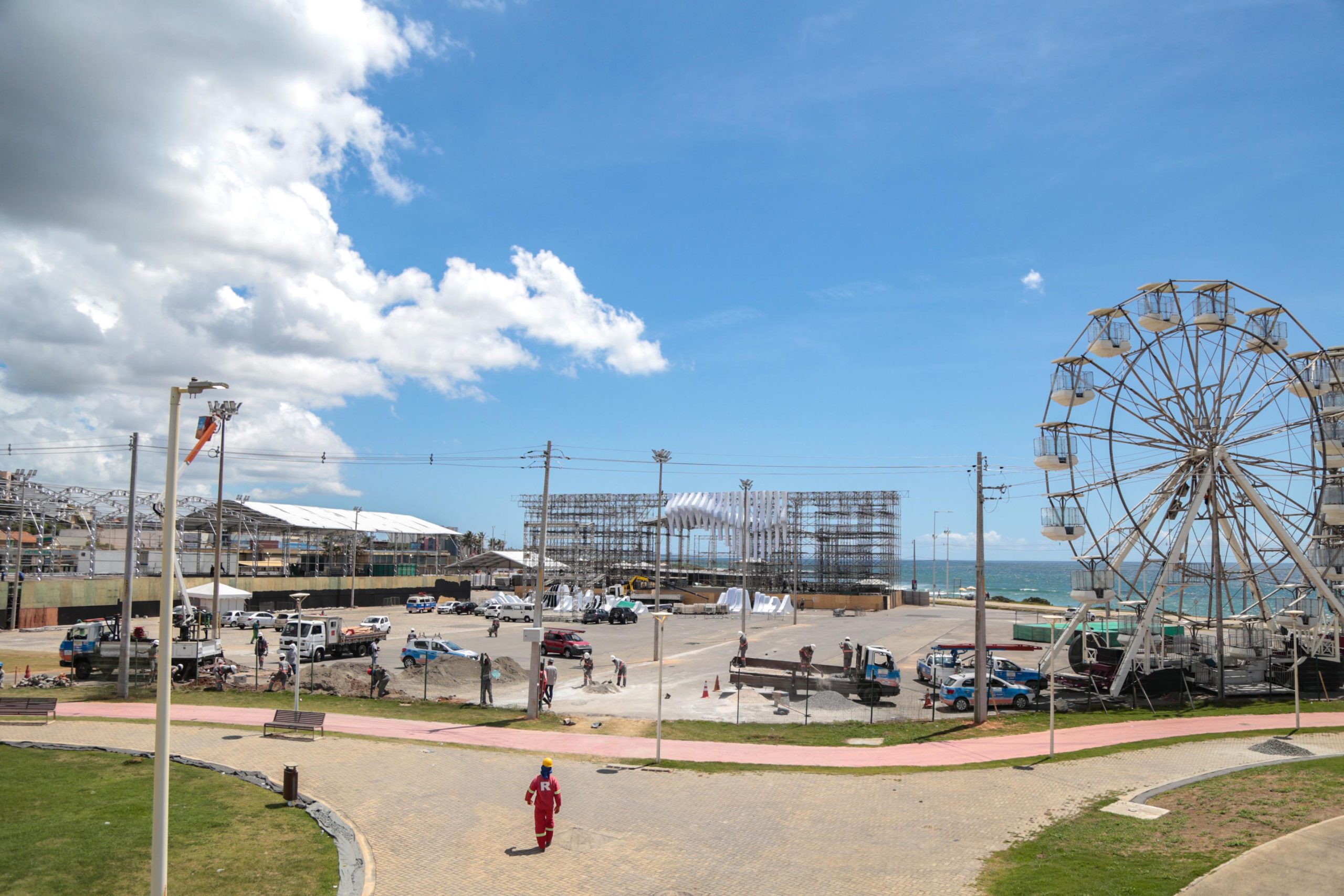 Faltando pouco mais de uma semana para o início da Virada Salvador, a montagem da estrutura segue a todo vapor, na Arena Daniela Mercury, na Boca do Rio. O evento deste ano, que terá início na quinta-feira (28) e segue até o domingo (1º), contará com 90 mil metros quadrados de área, que abrigarão o palco principal, o palco Brisa e muito mais.