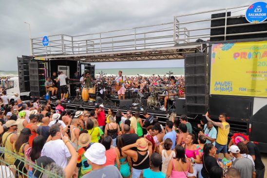 O grupo musical, que é formado por veteranos da Axé Music como Ricardo Chaves, Magary Lord, Ramon Cruz e Jonga Cunha, se apresentou com o seu icônico “pranchão” – um trio menor, mais próximo do público – pelo segundo ano seguido como parte da programação do Festival da Primavera. Vários foliões foram ao espaço, que fica em frente ao mar, para festejar o comecinho do último dia do feriadão de 7 de Setembro.