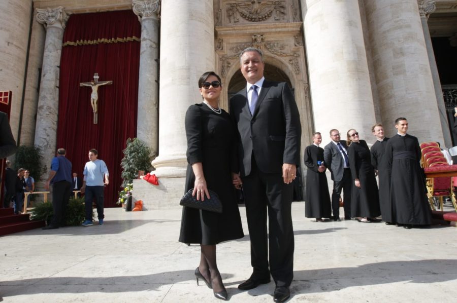 O governador Rui Costa chegou à cidade do Vaticano, na Itália, por volta das 9h da manhã (4h da manhã no Brasil) acompanhado da primeira-dama do Estado, Aline Peixoto, para assistir à cerimônia de canonização de Irmã Dulce.