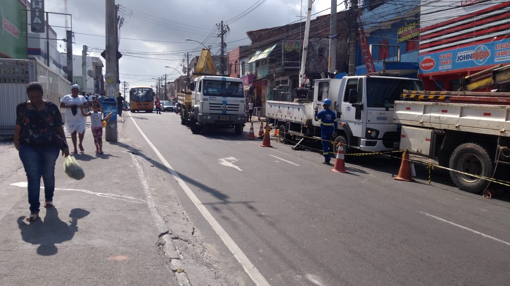 Uma obra na rede elétrica da Coelba em Cajazeiras está deixando o trânsito lento na região entre Cajazeiras 8 à Rotula da Feirinha. A obra vai aumentar a capacidade do fornecimento de energia elétrica para o bairro e localidades vizinhas. Cinco noves postes e três alimentadores serão instalados.