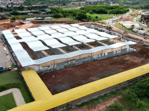 O terminal conta com 30 baias de ônibus para embarque e desembarque, 30 vagas de espera, área reservada para usuários de táxi, carro de aplicativos e moto táxis, além de salas administrativas e técnicas operacionais. Atualmente, a obra está adiantada, com 85% dos serviços concluídos e em fase final da pavimentação. Também avança a execução dos prédios administrativo e de apoio aos motoristas.