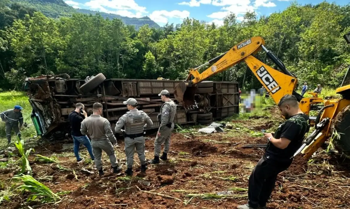Ônibus com estudantes cai em ribanceira e deixa sete mortos no RS