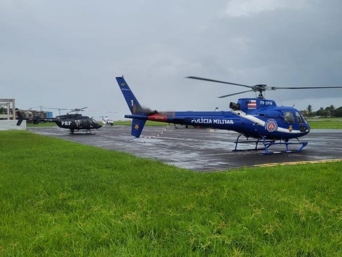 A Polícia Militar da Bahia (PMBA), por meio do Grupamento Aéreo (Graer), coordena o emprego de 11 aeronaves que estão em apoio às ações humanitárias em prol das vítimas da chuva em 72 municípios baianos. A PMBA conta ainda com o reforço de aeronaves das polícias militares de São Paulo, Rio Grande do Norte e de Sergipe, e das forças de defesa social como o Corpo de Bombeiros de Minas Gerais e da Polícia Rodoviária Federal (PRF).