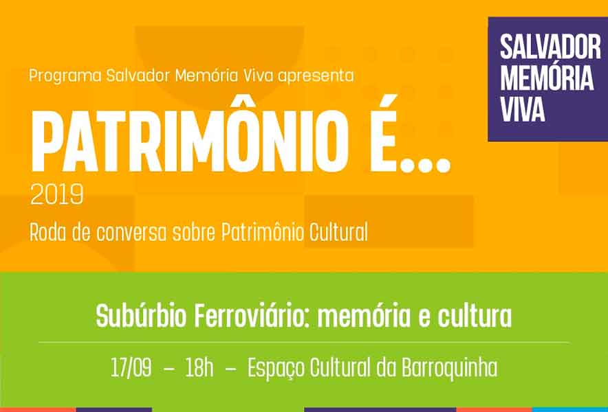 A Prefeitura, por meio da Fundação Gregório de Mattos (FGM), aborda o tema “Subúrbio Ferroviário: Memória e Cultura” na roda de conversa Patrimônio É… da próxima terça-feira (17), às 18h, no Espaço Cultural da Barroquinha, dentro da programação do Festival da Primavera.