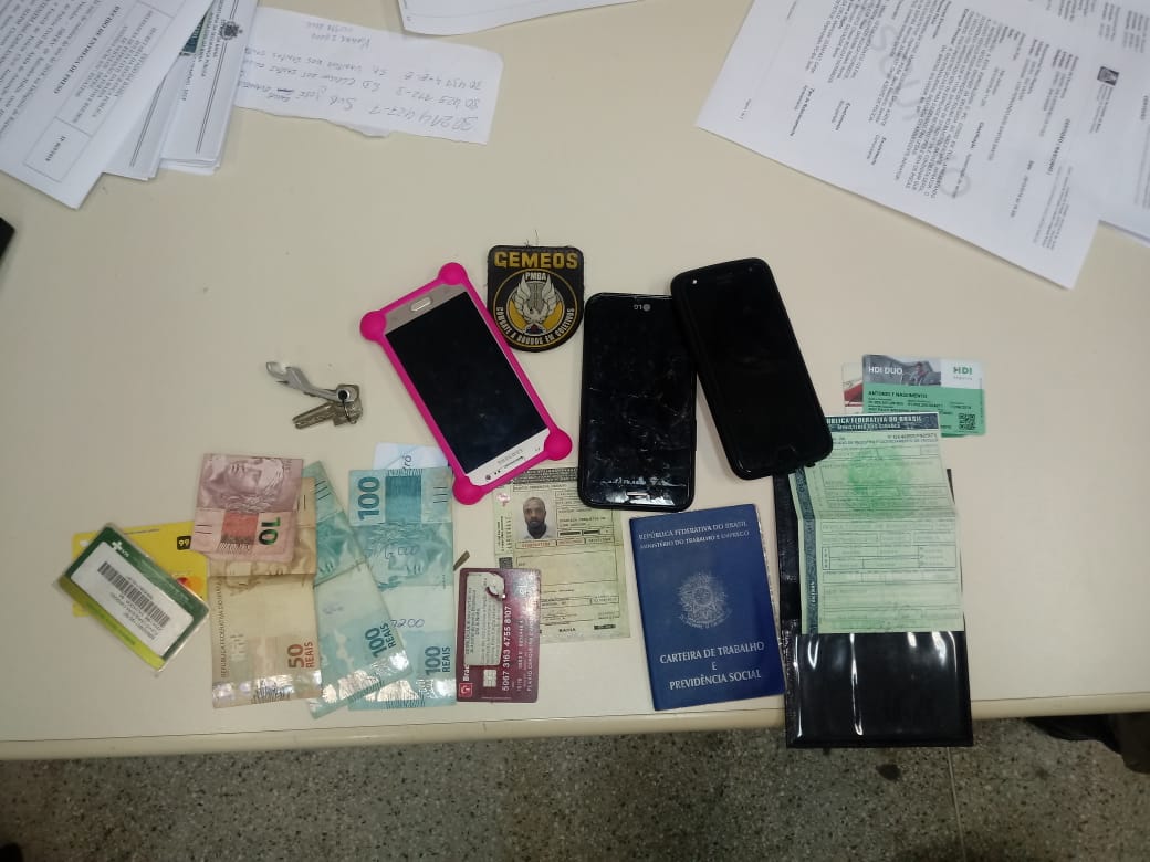 Tiago da Cruz de Miranda, 24 anos, e Flávio Cerqueira Cardoso, 30, foram flagrados com o veículo durante rondas de rotina da unidade. “Após a verificação do chassi, identificamos alteração da placa para PJU-0741. A original, PKB-1861, tinha restrição do roubo”, explicou o comandante da Operação Gemeos, major PM Gabriel Neto.