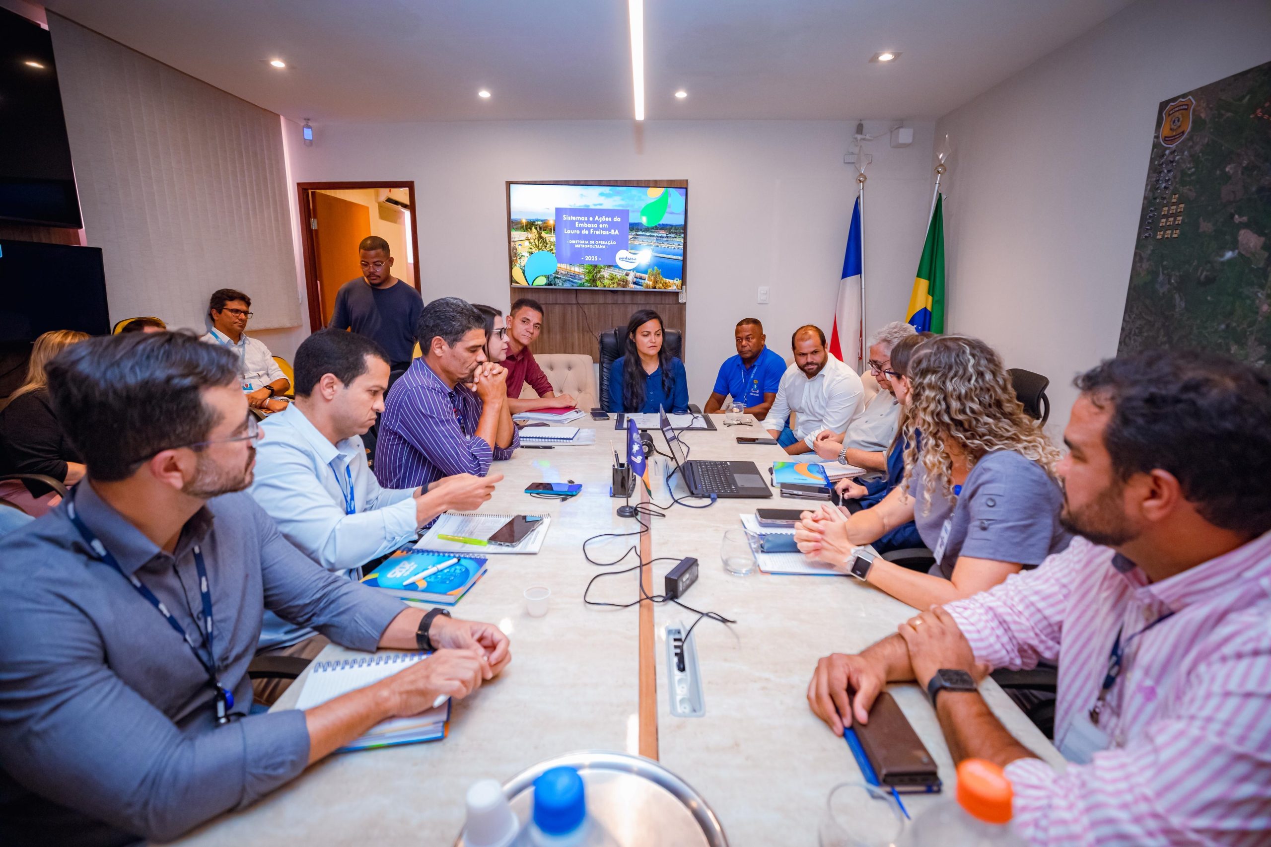 Durante a reunião, a Embasa apresentou seu plano de ação, detalhando as obras em andamento e os bairros que ainda dependem de captação de recursos para serem atendidos. O objetivo da empresa é ampliar a cobertura de esgotamento sanitário para 70% da cidade até o segundo semestre de 2026, o que representa um avanço significativo em relação aos 38% atuais. “Esse encontro foi muito produtivo. Precisamos dessa parceria com a gestão, que está aqui em peso, mostrando que a prefeitura está empenhada em resolver os problemas e nos ajudar a avançar”, destacou Gustavo Maior, analista de saneamento da Embasa.