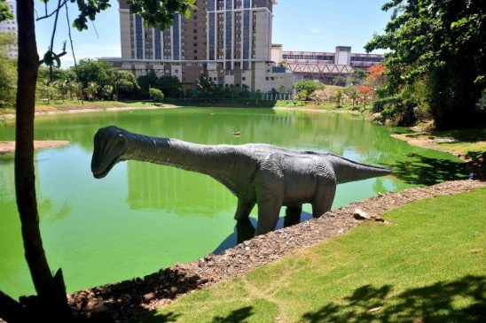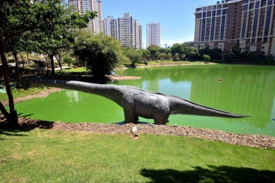 “Essa inauguração faz parte da estratégia de cada vez mais desenvolver o espaço público ao cidadão. Estivemos aqui há pouco mais de um ano e nos deparamos com um lugar completamente abandonado, com esgoto alimentando a lagoa, sem peixes, sem patos. As pessoas não frequentavam este local. Decidimos, portanto, implantar um projeto arrojado e impactante”, disse o prefeito, ressaltando que as réplicas dos dinossauros foram construídas pela própria Desal.