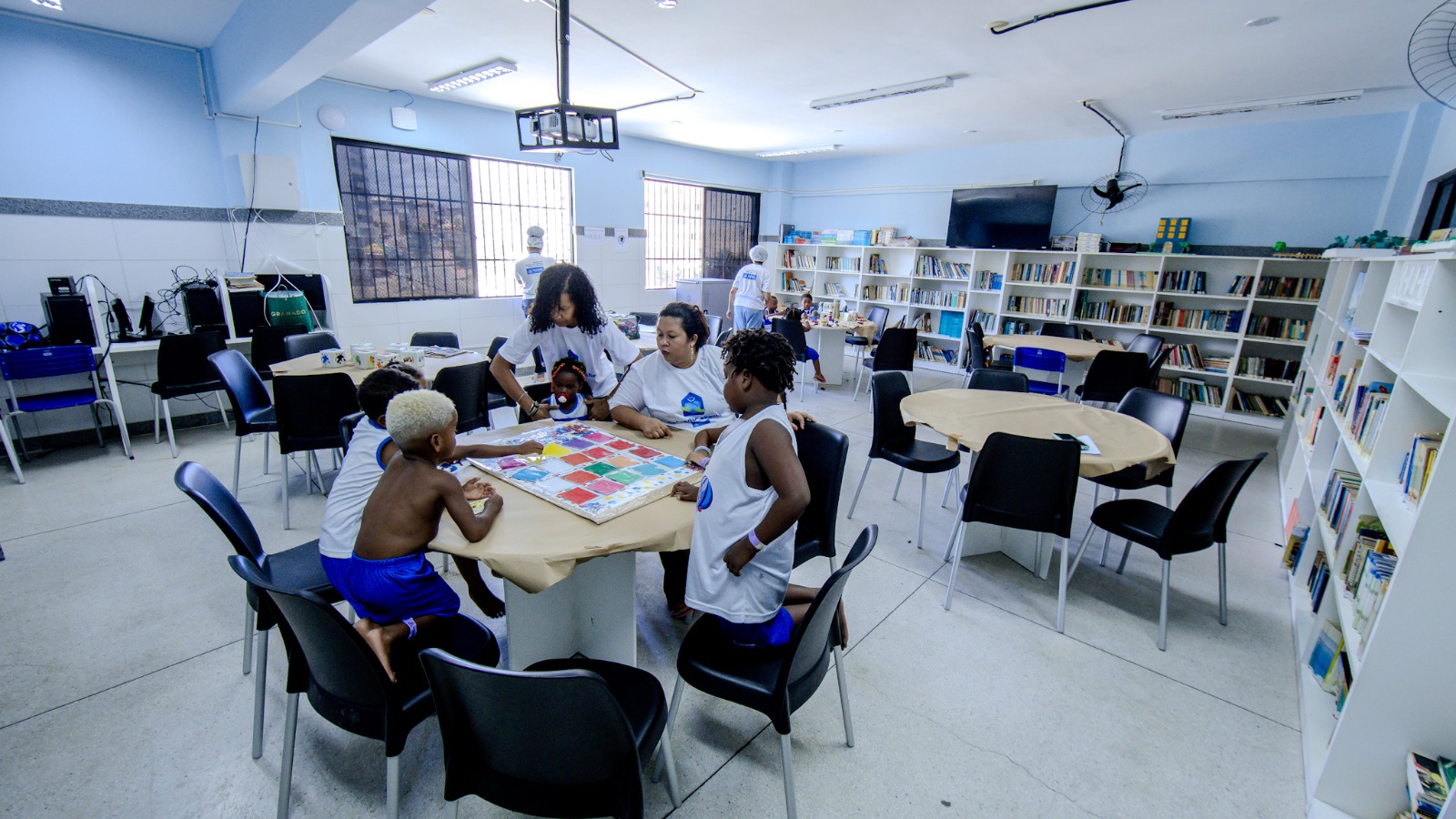 Neste sábado (27), 54 crianças e adolescentes, com idades entre 0 e 17 anos, foram recebidos na Escola Municipal Luiza Mahin, localizada no bairro Jardim Armação. O espaço tem capacidade para atender até 120 crianças, com possibilidade de ampliação conforme a demanda ao longo do festival.