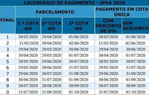 Os prazos de pagamento do IPVA, imposto sobre a propriedade de automóveis cobrado pela Secretaria da Fazenda do Estado (Sefaz-BA), servem de referência para o cidadão realizar o licenciamento integrado no Detran-BA. Quem antecipar a quitação do tributo terá 10% de desconto, em cota única, até o dia 10 de fevereiro. Confira a tabela com as datas, desconto e parcelamento para regularizar o veículo, de acordo com o número final das placas: