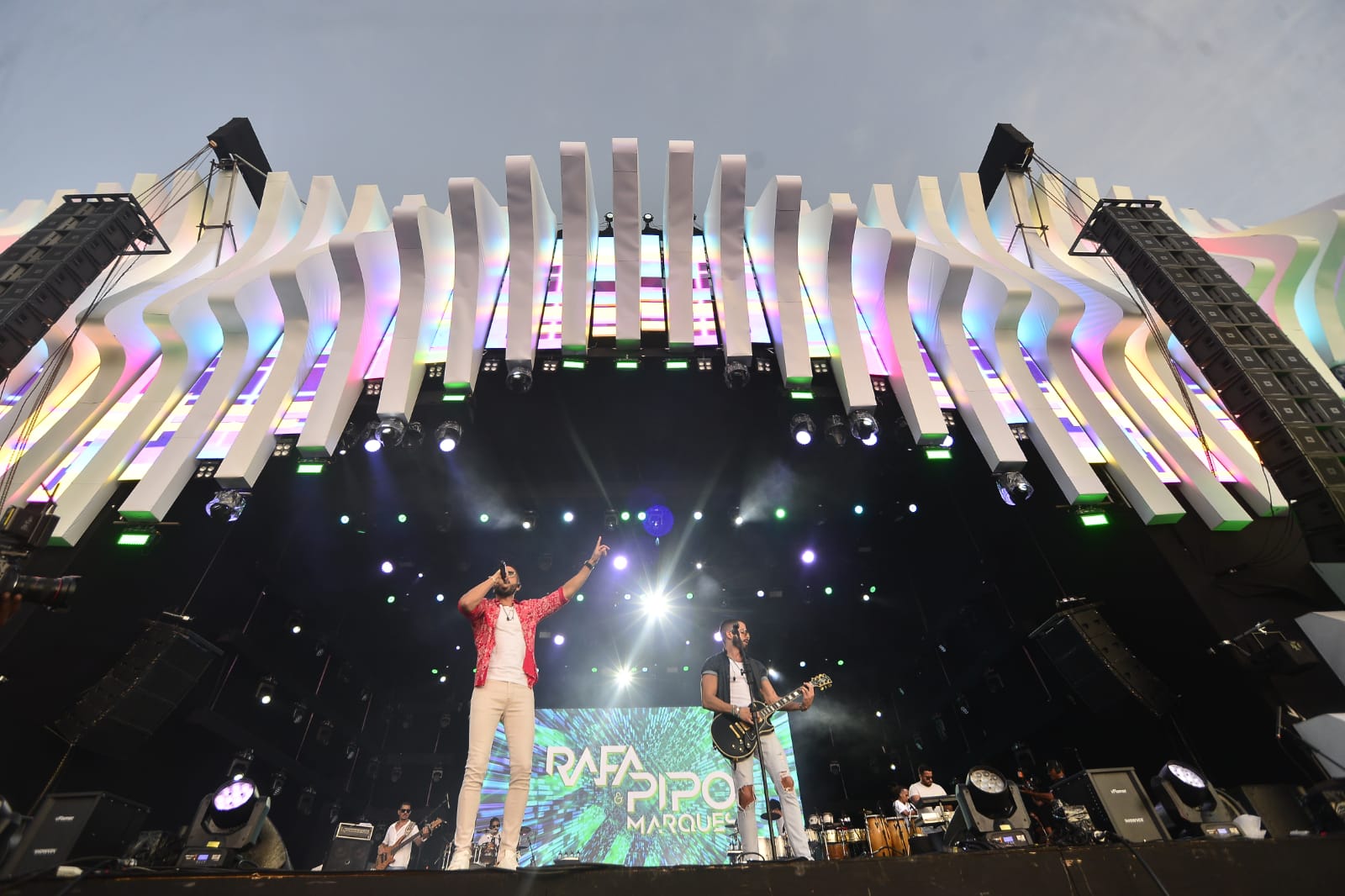 Os irmãos Rafa e Pipo Marques são a segunda atração da noite desta quinta-feira (29), no Festival Virada Salvador. A dupla agitou o público presente na Arena Daniela Mercury, na Boca do Rio, com músicas como “Se Não Puder Voar”, “Selva Branca” e “Arerê”. Além disso, os dois apresentaram a canção “Vumbora Pro Motel”, mais novo hit da dupla.