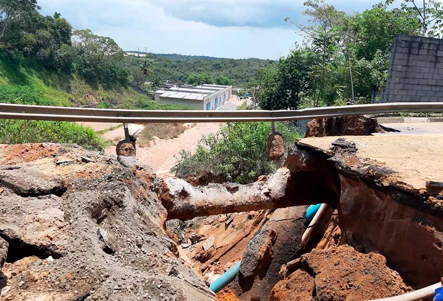 O caso ocorreu na Rua Dois de Julho, no bairro Capelão. Imagens do local mostram a gravidade do problema. Nas fotos é possível ver que quase toda a pista foi “engolida” pelo buraco, que se formou na beira de um barranco.