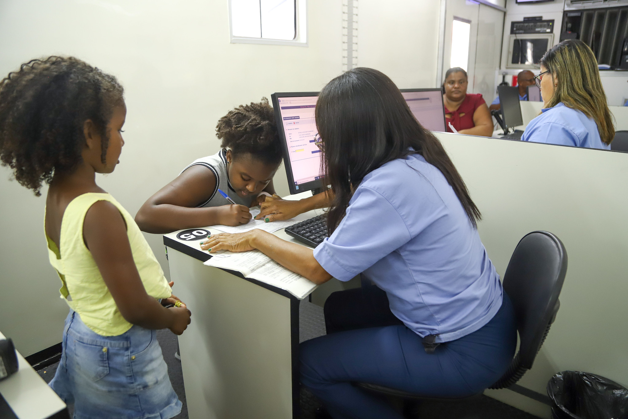 Por dia, estão sendo entregues 200 fichas de atendimento. A emissão de todos os documentos é gratuita, exceto a 2ª e demais vias do RG, que tem uma taxa de R$ 43,62. Caroline Santana dos Santos, 25 anos, aproveitou a oportunidade e levou suas duas filhas, Marília (6 anos) e Mirella (9 anos), para emissão da 1ª via do RG. Ela destaca a felicidade em não precisar mais sair com a certidão de nascimento das crianças. “Há muito tempo estou querendo fazer o RG delas, mas ficava adiando por conta de tempo e gastos com transporte. Então quando eu soube que a carreta estava perto aqui de casa, vim correndo. O atendimento foi muito rápido”, comentou.