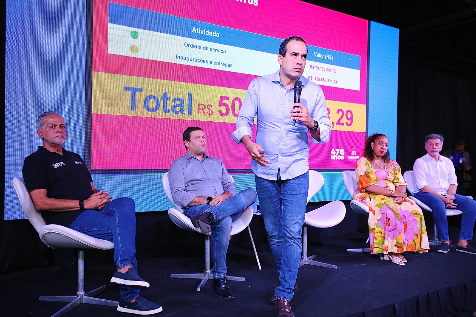 Em comemoração aos 476 anos de Salvador, que serão celebrados no próximo dia 29 de março, o prefeito Bruno Reis apresentou nesta terça-feira (18), no Teatro Gregório de Mattos, um conjunto de inaugurações, entregas de obras e ordens de serviço a serem assinadas, que totalizam mais de R$508 milhões em investimentos municipais. Todas as intervenções serão entregues ou autorizadas entre março e abril.