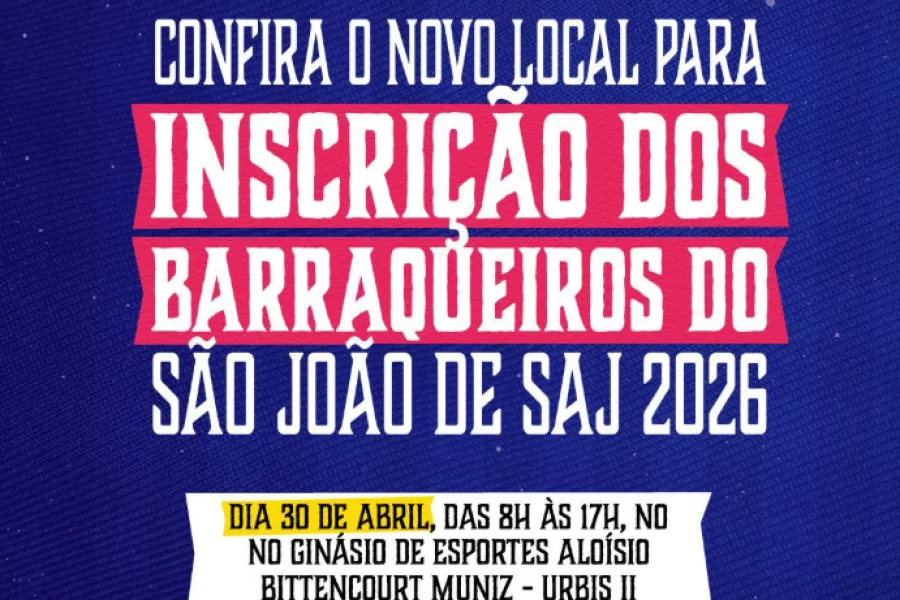 A Prefeitura Municipal de Santo Antônio de Jesus, por meio da Secretaria de Cultura, Turismo e Juventude (SCTJ) e da Secretaria de Governo (SEGOV), informa que foi definido um novo local para a realização das inscrições dos barraqueiros que desejam atuar durante o São João de SAJ 2026.