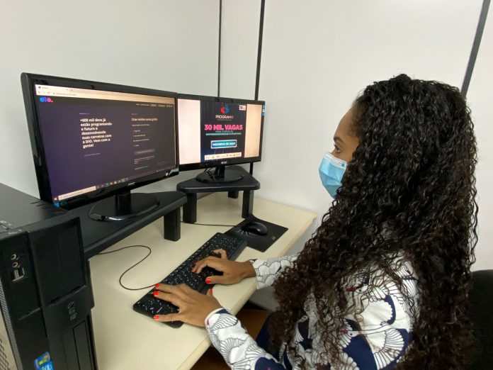 Para se inscrever, basta entrar no site da Secti e clicar no banner do “Programaê” que aparece na tela inicial. Você será redirecionado a outra página, onde deverá preencher um questionário simples com algumas informações pessoais para concluir a inscrição. O próximo passo é navegar pelo site e escolher um dos 300 cursos disponíveis. Vale lembrar que é possível fazer quantos cursos desejar, e todos contam com certificado de conclusão. Ao concluir um módulo, a pessoa passa a fazer parte do banco da DIO, podendo ser indicada a possíveis oportunidades de emprego.