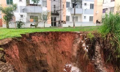 Uma cratera aberta no Condomínio Residencial Portal do Vale, no bairro de Boca da Mata, não danificou a estrutura dos imóveis. A informação é da Defesa...