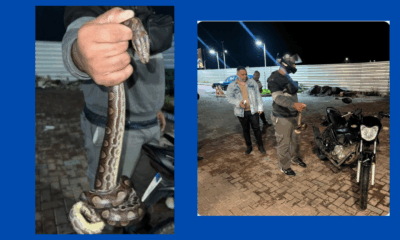 Animal era uma jiboia de 1,5 metro, espécie que não possui veneno; incidente aconteceu no bairro Papagaio Um entregador viveu momentos de susto enquanto realizava uma...