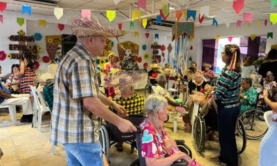 Comidas típicas, roupa quadriculada, chapéu de palha, músicas juninas, decoração com bandeirolas e balões, além de muita animação. Assim foi o tradicional forró do Abrigo D....