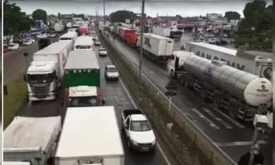 Um grupo de caminhoneiros protesta contra o aumento do preço do combustível nesta sexta-feira, 11, na Avenida Transnordestina, nas imediações do Anel Viário de Feira de...