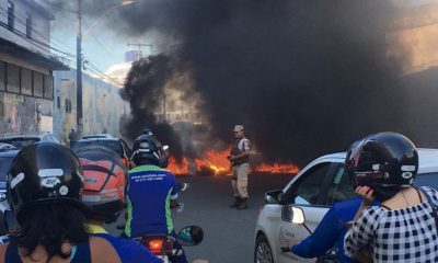 Na manhã desta sexta-feira (14). a Avenida Engenheiro Oscar Pontes na Calçada, cidade baixa de Salvador foi bloqueada por um grupo de manifestantes que queimou pneus...